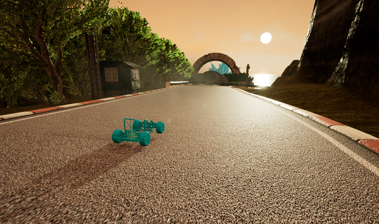 This project is a racing track, made with Unreal's default vehicle blueprint, the landscape spline tool and free assets from the epic game's store for set dressing. It was a student project, made over 4 days