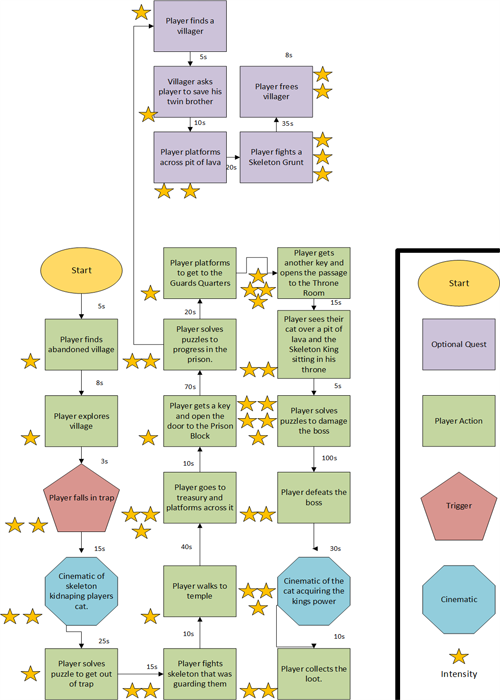 After getting most of the planning done, I made a beat chart to manage the progression and the pacing, followed by a level design document, going through gameplay beats and detailing any story detail relevant to the beat.